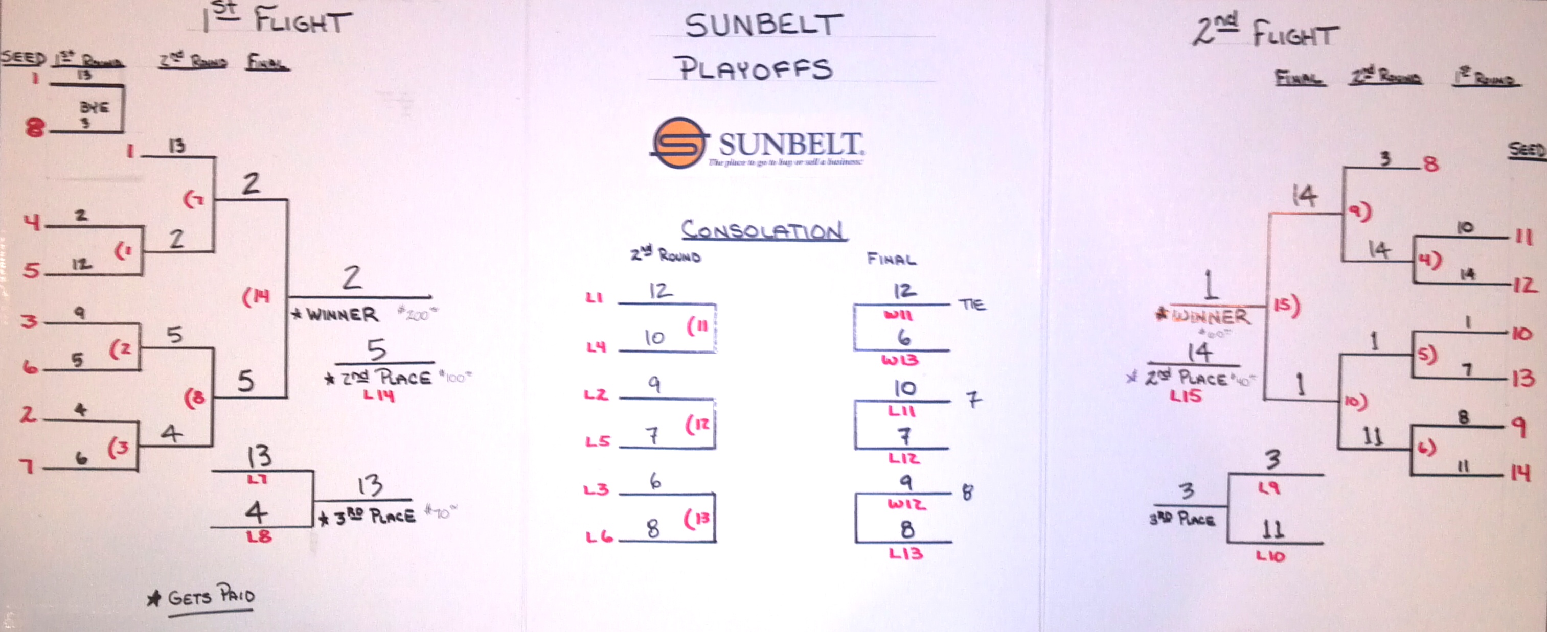 The shotgun start worked out well. We finished well before dark and we didn't have to deal with aerated greens at all this year. I list off the winners in the Hot Sticks section, but here is a picture of those handsome winners!